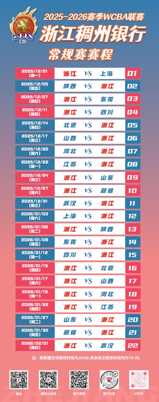 新赛季新征程|2025-2026赛季WCBA联赛浙江稠州银行女篮赛程出炉!