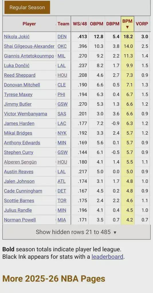 真实投篮命中率67.8%,BPM值高居联盟第五。