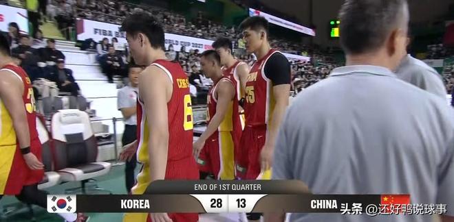 比赛开局,中国男篮便陷入被动,被对手打出 16-4 的攻势,首节仅得 13 分,进攻乏力。韩国队则势不可挡,李政玹半场 6 中 6,轰进 4 记三分,边俊亨再中压哨三分,半场结束中国男篮已落后 23 分。