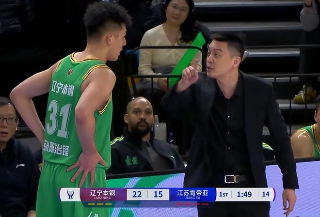第二节回来闫实罚篮,亨特二次得分,刘泽希得分,江苏队缩小分差。辽宁队陷入得分荒,不是打铁就是失误,杨鸣非常无语。俞泽辰底角三分终于命中,闫实上篮,布朗快速回应,莫兰德空切,爱德华兹硬解,俞泽辰得分,分差回到两位数。