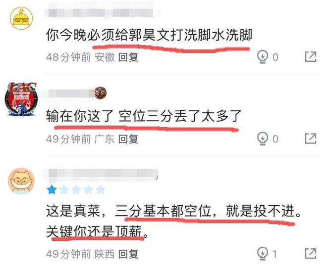 在新赛季揭幕战,同曦加时以102-107惜败广东的比赛中,祝铭震虽然拿到板凳席上最高的14分,但16次出手仅命中5球,三分球10中2,但凡他能够多进2个空位三分,郭昊文都不至于孤掌难鸣,空砍生涯新高的42分外带6篮板8助攻。有球迷嘲讽祝铭震:你的三分比戴了还安心。