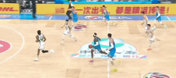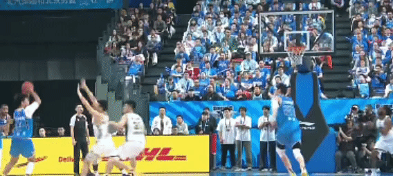 比赛开始后,两队都在打快,上一场比赛得到保留的赵睿,今天首发且状态极好,他和周琦的配合很有默契度,一个快速助攻给到队友,上篮拿分。