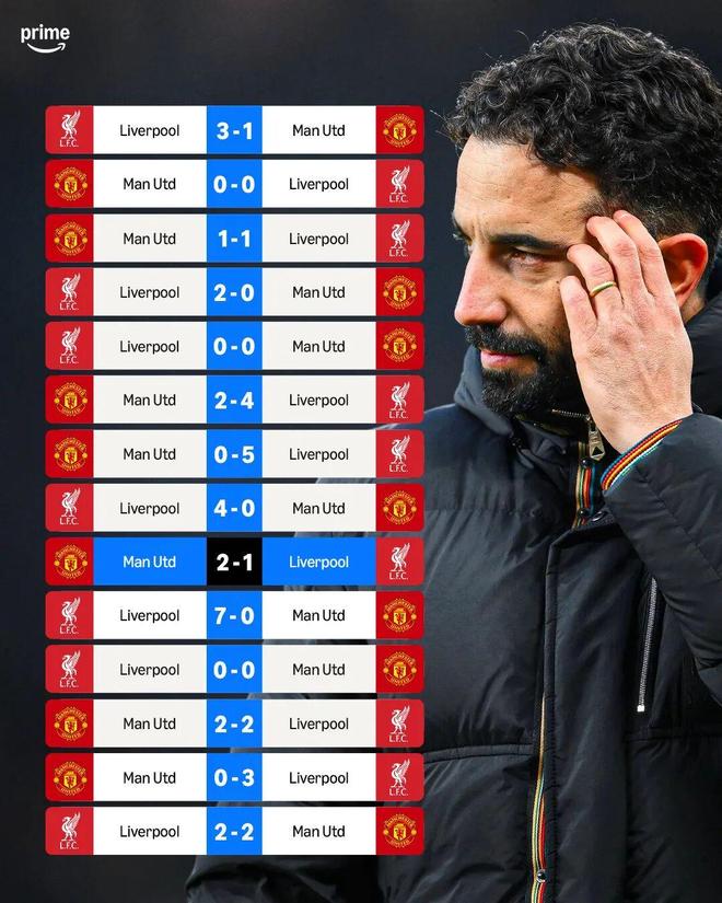 有趣的是,今年1月客场对利物浦之战,却反而是阿莫林在潜在的12分里唯一拿到积分的对阵。曼联2-2战平对手,红魔甚至有机会全取3分,如果马奎尔在补时阶段把握机会将球打入的话。