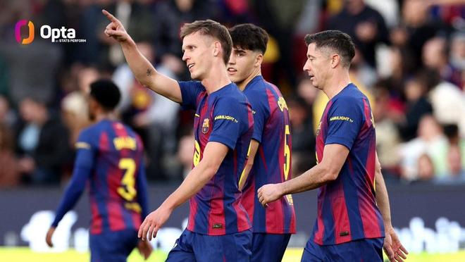 根据Opta的统计,本场比赛的进球让巴萨在西甲的连场进球场次延续到了34场,这34场比赛他们一共打进了90粒进球,这是巴萨自2019年2月巴尔韦德执教时期以来最长的西甲连场进球纪录。